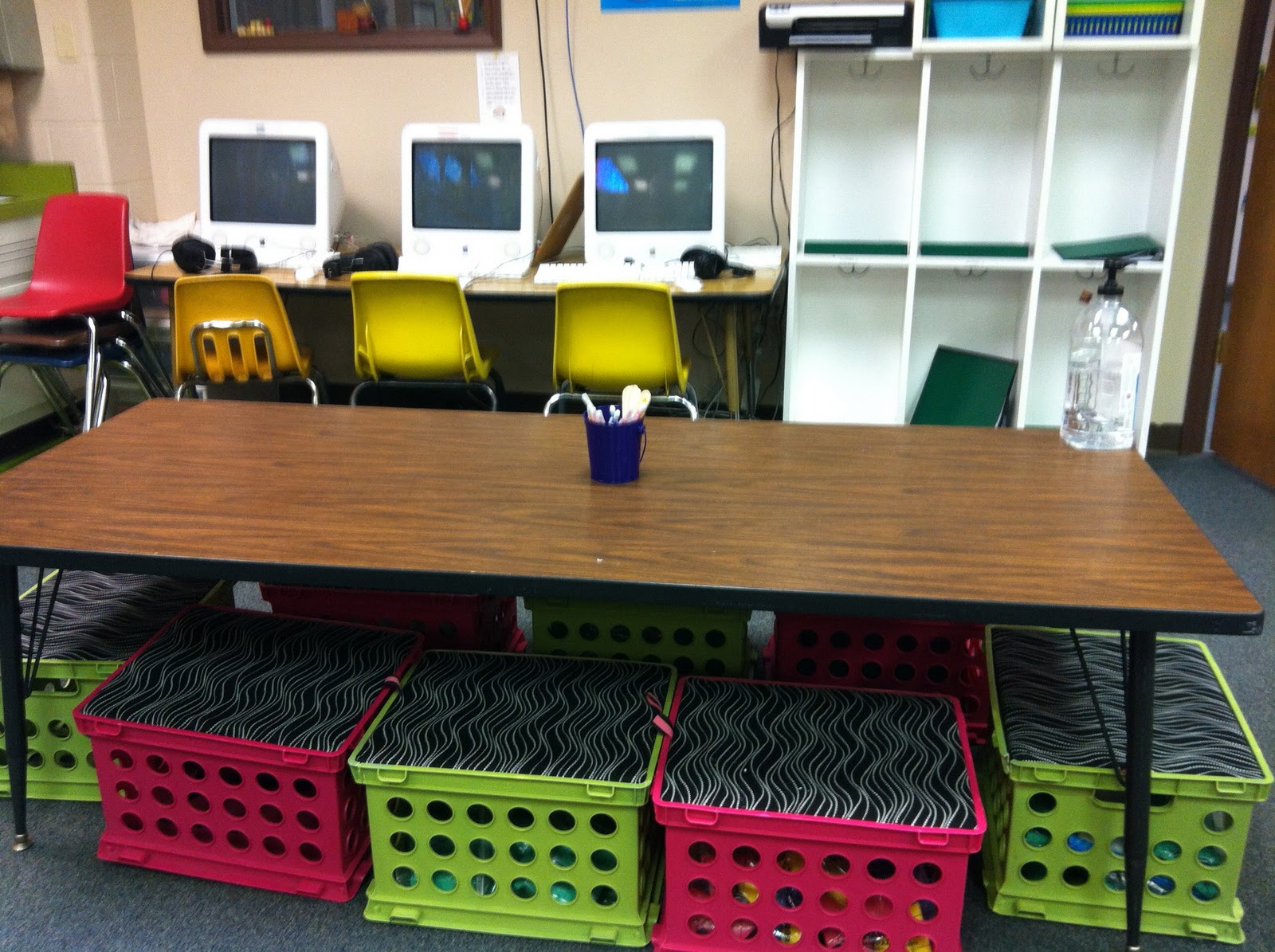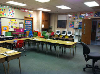 The view from the other side of the room to my door. Again, that ugly chair has GOT to go! I love the Mac computers in our school. Don't they look just awesome {insert Mac geek comments here}.