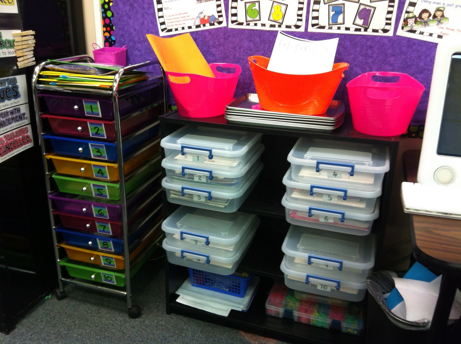 Hi! Just found your blog for the first time. Your classroom looks really organized already. I teach 2nd grade too and love it. I had the colored drawer/storage cart and the drawers were ALWAYS coming off the tracks! Drove me crazy!