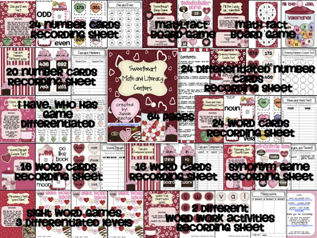 Guess what?! Since it's almost Valentine's Day, I'm putting my Sweetheart Valentine Math and Literacy Centers unit on sale. Get this....it's only $3.50 for 12 centers! What?! Head on over and grab your copy now! Sale ends tomorrow night at 9:00 pm.