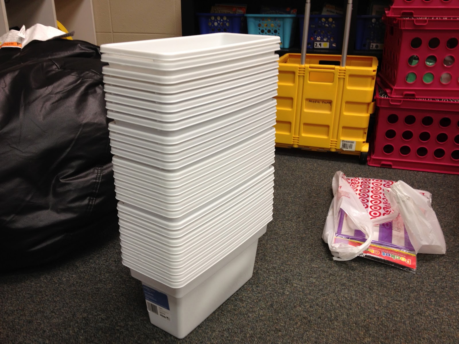 So, I stalked Walmart {3 of them close to where I live} to find these ice bins to use as book bins for my students with Daily 5 Read to Self. I think I ended up with 27 of them! And I got every single one they had {in all 3 stores}! Now to figure out where to house them...