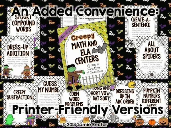 Now, if you follow me on my Facebook Fan Page, you know that I posted Friday saying that I was working on my Creepy Math and ELA Centers, right? WRONG! The stomach bug hit me and it hit HARD! It's been going around, but it's not one of those sicknesses that I usually catch. Well, it caught me alright! But....the good news is that in the challenge of Jamie vs. Stomach Bug, Jamie WON! Stomach Bug LOST! Ding, ding, ding! I spent some time in bed and other places of the house (I'll spare you the details and you can thank me later), but today I was able to get back in front of the computer and finish up the final touches and previews to my Creepy Math and ELA Centers. They are ready if you have been waiting! And thanks so much for your patience as I tried to revive myself. ;)