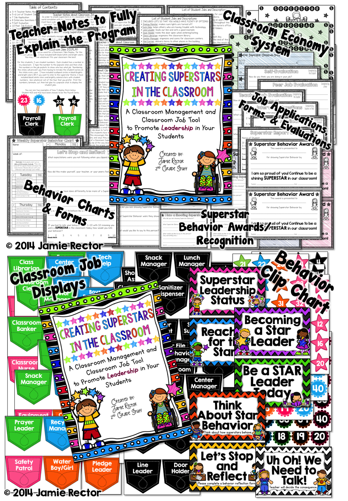 I also got super busy creating a new product that promotes leadership in the classroom. Creating Superstars in the Classroom: A Tool to Promote Leadership is a classroom management and classroom job tool that creates a real world simulation in your classroom. Students will begin to recognize positive behaviors and leadership skills in themselves as well as their classmates. I think this will be a wonderful addition to your classrooms! You can find more information in the Product Description in my store (including the entire contents of the product) by clicking {HERE} or on the pictures below!