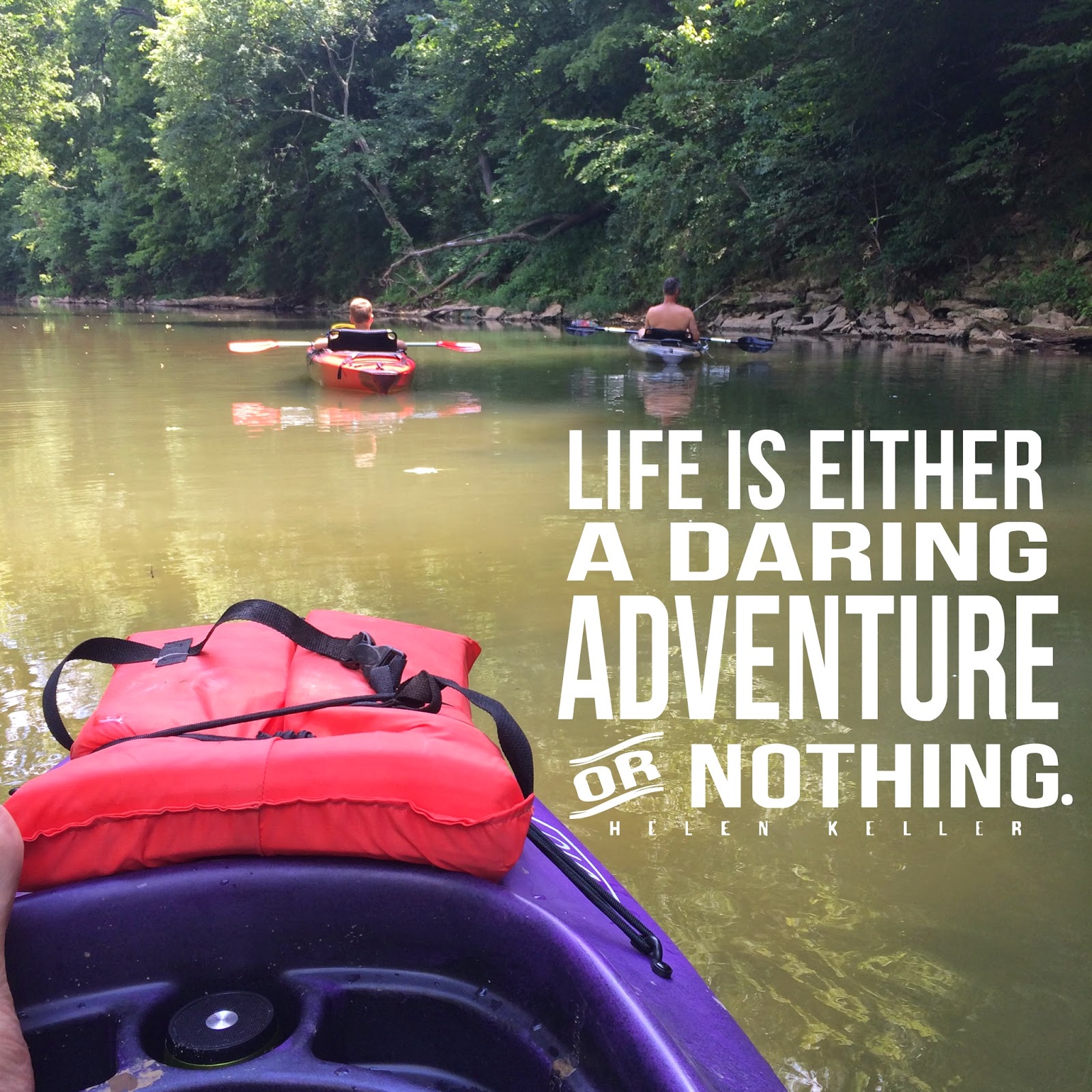 When we weren't at the beach, we spent our time outdoors. We are a family of 3 who LOVE the great outdoors! One of our favorite memories from this summer were the times we spent floating down the local creeks and rivers in our kayaks. This was the first year that our little boy was able to be in his own boat, so again, there were some awesome memories made. I love this picture of my boys up ahead. :)